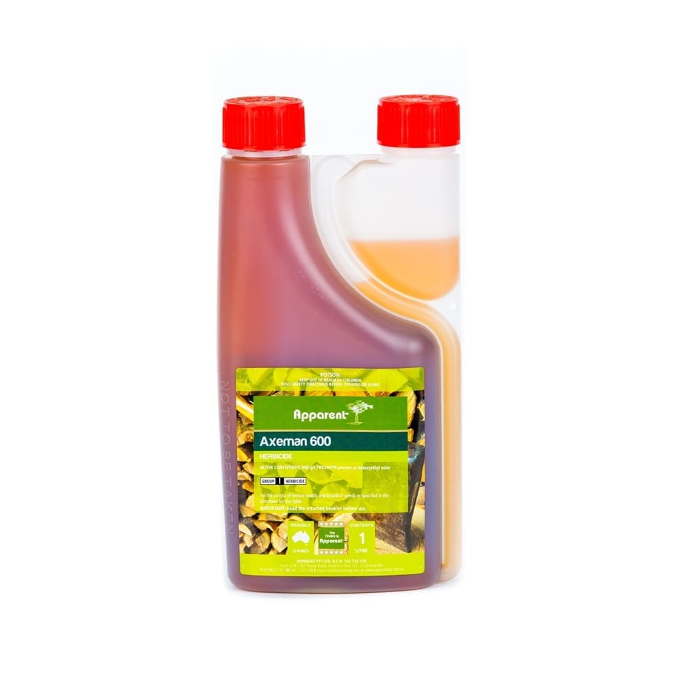 Axeman Triclopyr 600 Herbicide contains the active ingredient Triclopyr, which has activity on a wide range of broadleaf weeds, woody weeds and melons.