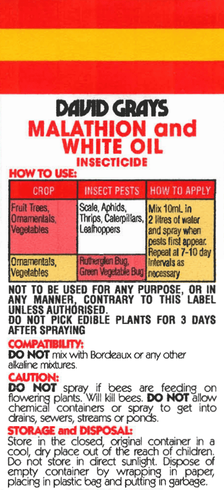 Scale, Aphids, Thrips, Caterpillars, Leaf Hoppers, Rutherglen Bugs, Green Vegetable Bug, White Wax Scale, Red Scale, White Louse Scale