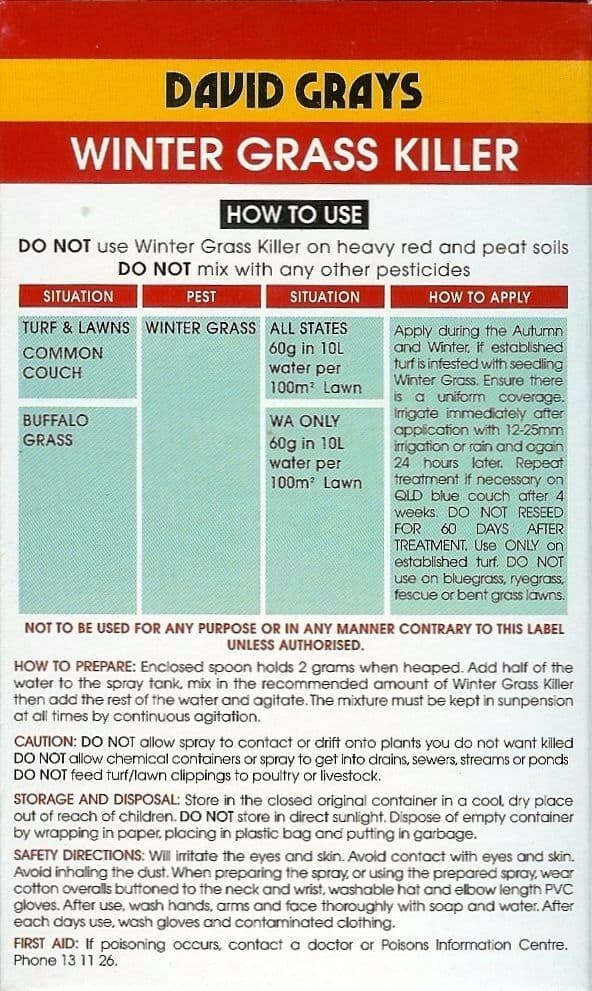 David Grays Winter Grass Killer will control the growth of winter grass when used as per the label instructions.
