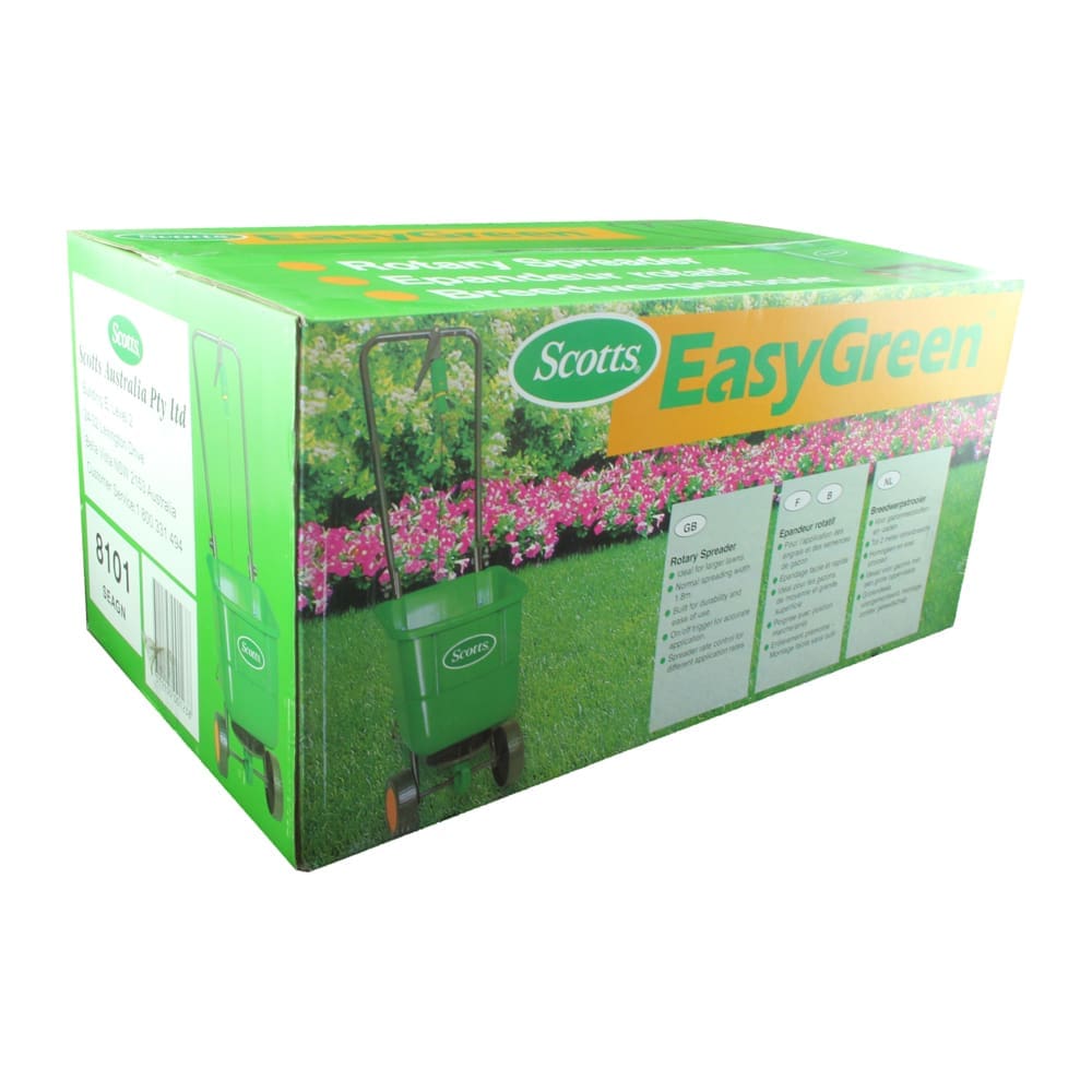 Spreading granular fertilisers over the lawn has never been easier. Scotts fertiliser spreaders are designed to make the task accurate, clean and simple – no more dipping your hands into bags of fertiliser, no risk of burning the lawn with hit and miss broadcast applications. The EasyGreen Broadcast model is perfect for medium to large sized lawns