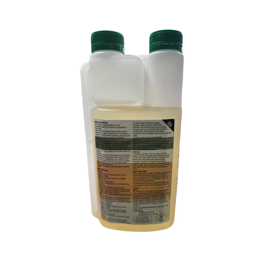 Fortune 500 is your all-in-one solution for a myriad of insect problems, including termites, ants, spiders, locusts, cockroaches, silverfish, grasshoppers, aphids, earwigs, and more. This versatile insecticide ensures effective treatment across a broad spectrum, making it an indispensable tool for Australian households and agricultural settings. Additionally, it works exceptionally well on the notorious lawn black beetle, providing comprehensive protection for your lawn and garden.