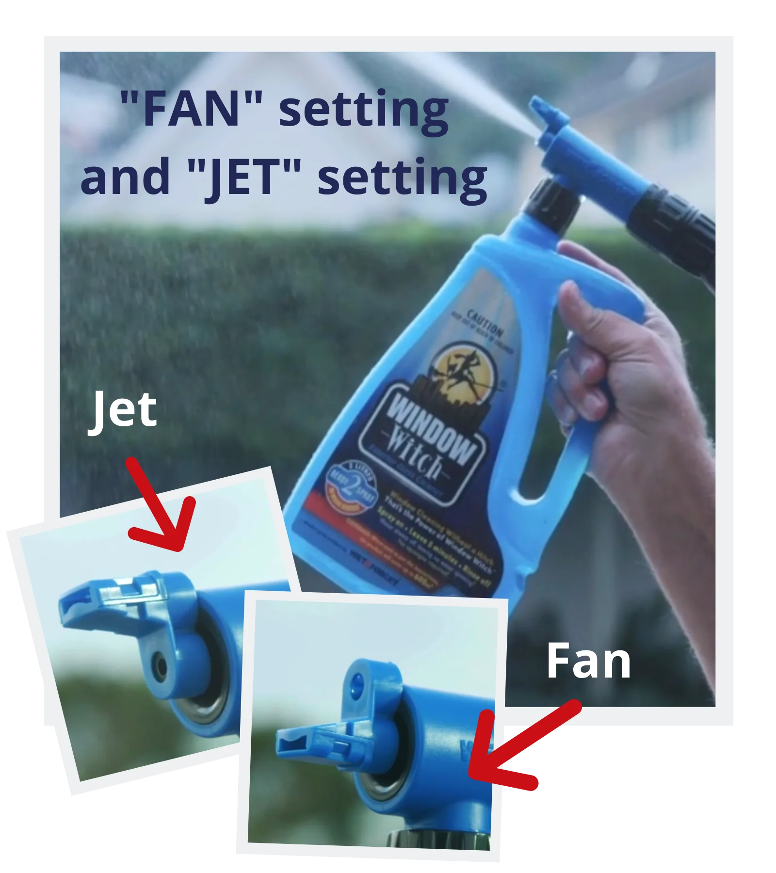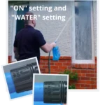 • Attach Window Witch to a standard garden hose and turn the dial to the “ON” position.