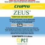 Apply Zeus Termiticide and Insecticide around building foundations, gardens, lawns, and outdoor structures.